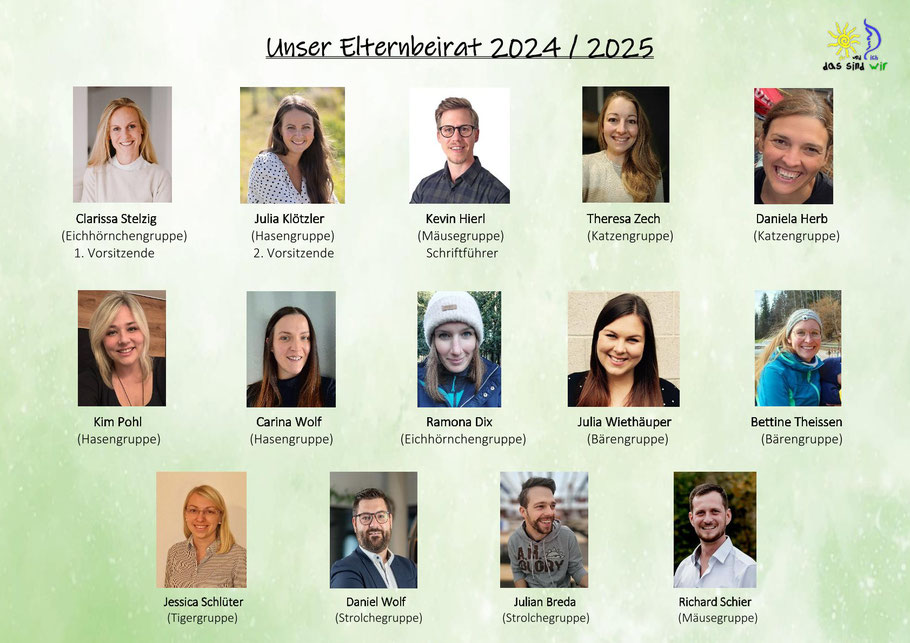 Für die Gestaltung der vertrauensvollen Beziehungen und die Zusammenarbeit von Eltern, pädagogischem Personal und Träger der Kindertageseinrichtung ist ein Elternbeirat zu bilden. Dieser wurde von den Eltern als Vertretergruppe stellvertretend für alle Eltern des Kindergartens und der Krippe gewählt. Der Elternbeirat ist das Bindeglied zwischen den Eltern und dem Kindergarten. Die Arbeit des Elternbeirates in Zusammenwirken mit dem Träger und dem Einrichtungsleitungsteam basiert auf Art. 14 Bayerisches Kinderbildungs- und Betreuungsgesetz. Die Zusammenarbeit mit dem Elternbeirat sehen wir als sehr wichtige Aufgabe.